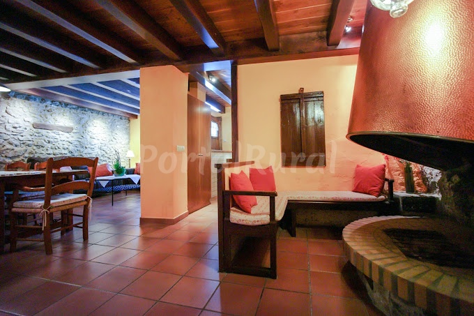 La casa dispone de amplios espacios pensados para compartir tiempo en grupo. En su interior se encuentra un gran comedor junto a la sala de estar, un espacio acogedor donde destaca la chimenea, perfecta para crear un ambiente cálido durante las estancias en invierno. La cocina es independiente y está completamente equipada, lo que permite organizar comidas con total comodidad durante toda la estancia.