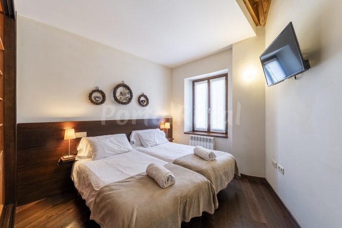 Casa Abadía es una vivienda con capacidad para 10 personas, distribuida en cinco dormitorios. Se trata de una construcción típica de montaña, con fachada de piedra, tejado de pizarra y acabados interiores en madera tanto en suelos como en techos, creando un ambiente cálido y acogedor.