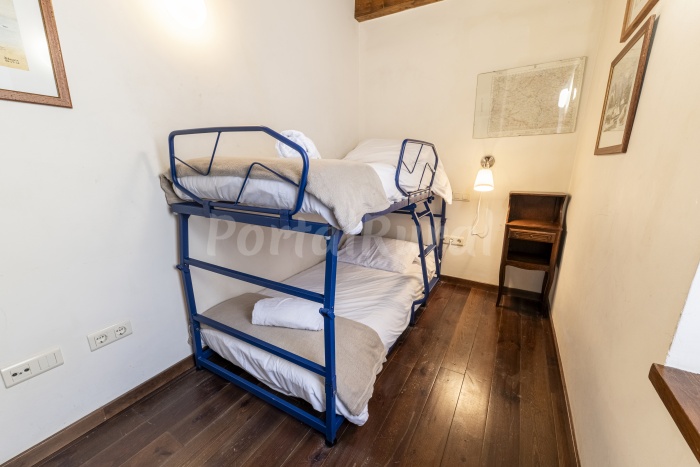 La casa dispone de una habitación de matrimonio con baño completo integrado, una habitación doble también con baño completo en su interior y tres dormitorios adicionales con dos camas individuales cada uno, que comparten un baño común. Además, cuenta con dos camas supletorias y espacio suficiente para su ubicación dentro de la vivienda.
