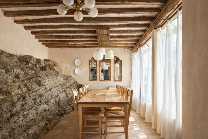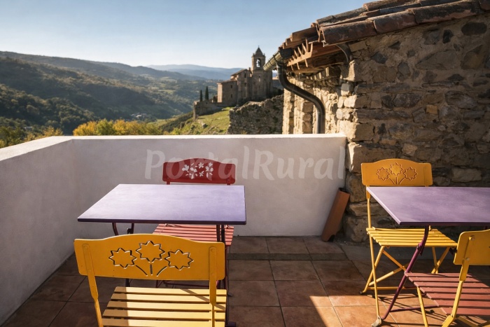 Casa rural ideal para grupos grandes, con amplios espacios, comedor para eventos, terraza con vistas y carácter tradicional en plena naturaleza.
