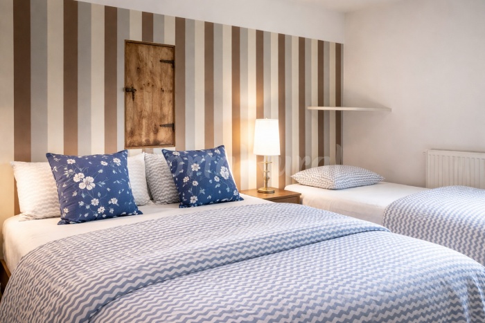 - 1 habitación triple con baño (1 cama de 150 cm + 1 cama de 90 cm)