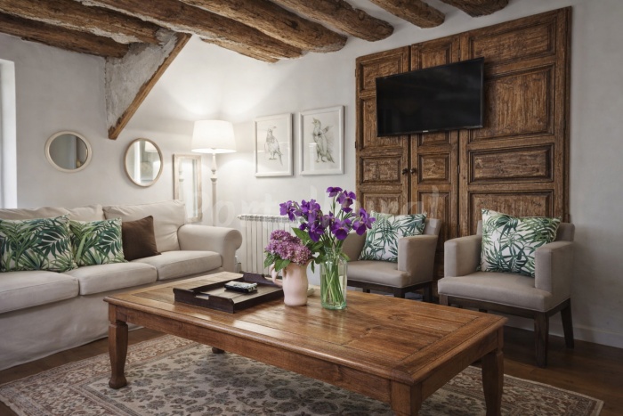 - 1 habitación triple con salón y baño (1 cama de 150 cm + 1 cama de 90 cm + sofá-cama de 135 cm)