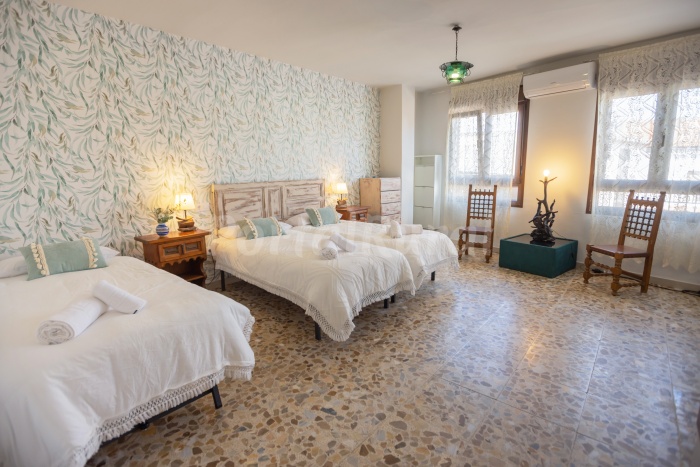 La Bandada cuenta con 4 amplias habitaciones, 3 baños completos y 1 aseo, totalmente equipados. Disfrutarás de un ambiente acogedor con aire acondicionado y calefacción por bomba de calor en cada estancia, conexión WiFi gratuita y una cocina con todos los electrodomésticos: lavavajillas, horno, microondas, lavadora, cafetera Dolce Gusto y mucho más.