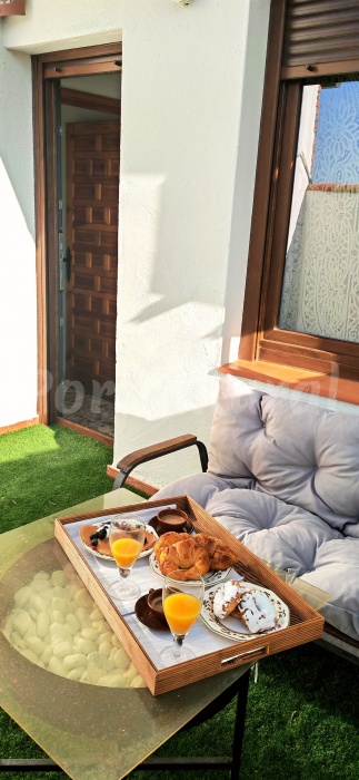 En el exterior encontrarás un jardín privado con barbacoa, comedor al aire libre y un precioso naranjo que aporta un toque natural y fresco. Además, dispones de garaje privado con cargador para coche eléctrico, gratuito para los huéspedes.