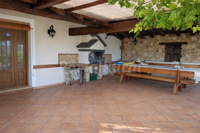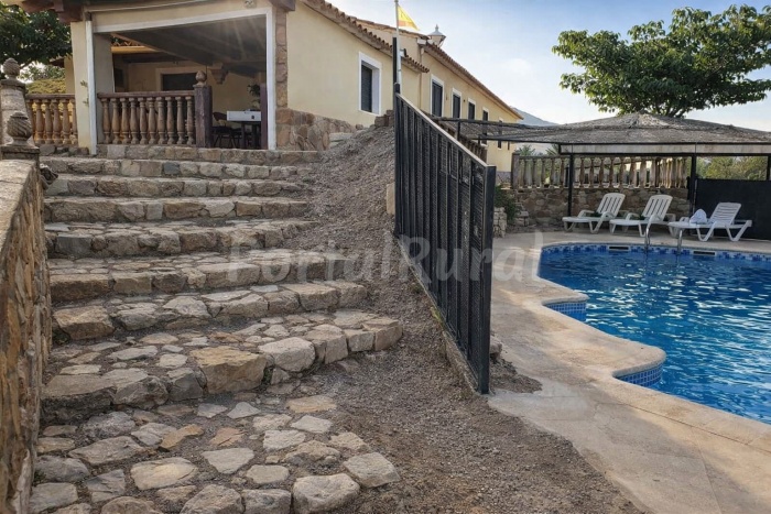 En el exterior, el cortijo dispone de dos terrazas con vistas abiertas, una de ellas con barbacoa, mesas y sillas, perfecta para disfrutar de comidas al aire libre. Además, cuenta con una piscina integrada en roca natural, uno de los principales atractivos del alojamiento.