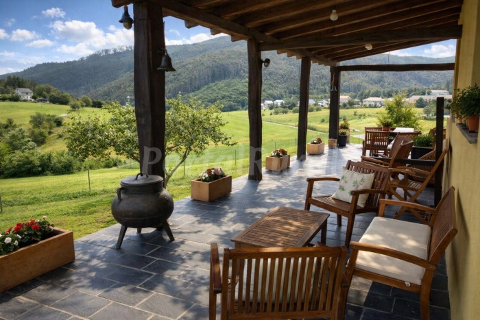 En el exterior, destaca un amplio porche desde el que se pueden contemplar los paisajes de la finca, así como zonas naturales donde pastan ponys, creando un entorno único y relajante.