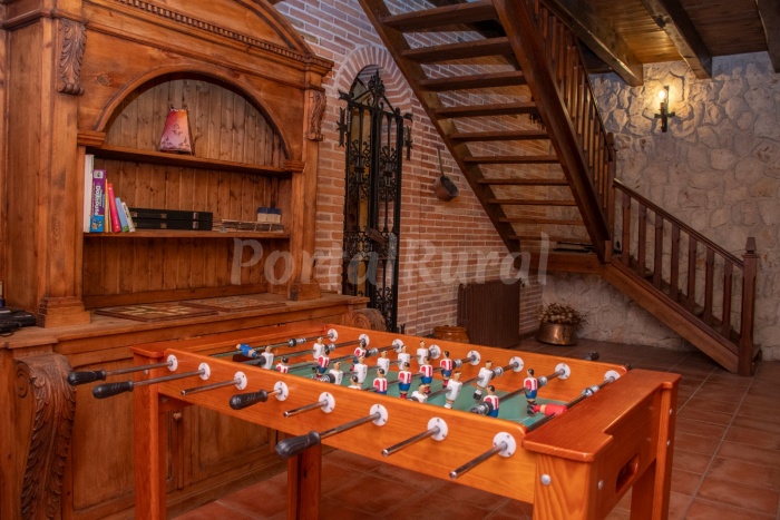La vivienda tiene capacidad para alojar hasta 11 personas y se distribuye en dos plantas bien diferenciadas. En la planta baja se concentran los espacios comunes, donde destaca un gran salón con chimenea, ideal para reunirse en los meses más fríos. En esta misma planta se encuentra la cocina totalmente equipada, el comedor y una sala de juegos, creando un conjunto perfecto para compartir tiempo en grupo sin renunciar a la comodidad.