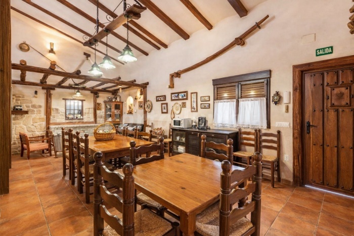 La propiedad se divide en dos zonas diferenciadas, lo que permite adaptar el alojamiento según el tamaño del grupo. Por un lado, la casa principal, con capacidad aproximada para 8-12 adultos, equipada con habitaciones con baño privado, televisión, calefacción y aire acondicionado.