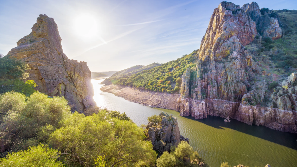 A 60 kilómetros, el Parque Nacional de Monfragüe es uno de los mejores lugares de Europa para el avistamiento de aves rapaces. El Salto del Gitano —un cortado rocoso sobre el río Tajo donde anidan buitres negros, cigüeñas negras y águilas imperiales ibéricas— es uno de los miradores de fauna más impresionantes de la Península. El parque se recorre fácilmente en coche con varios miradores señalizados y sin necesidad de guía. A continuación, Trujillo es la ciudad de los conquistadores en el sentido más literal: de aquí salieron Francisco Pizarro —conquistador del Perú— y Francisco de Orellana —primer europeo en navegar el Amazonas—. Los palacios que construyeron con el oro de América siguen en pie alrededor de una de las plazas mayores más impresionantes de Extremadura.