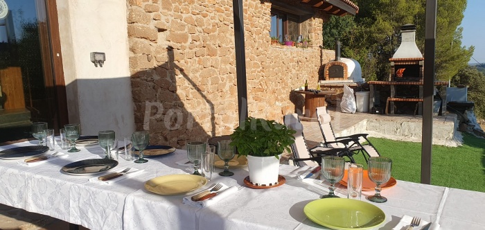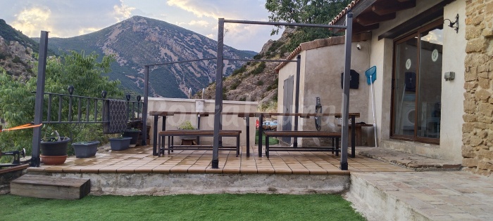 En el exterior, la casa dispone de dos amplios jardines que permiten disfrutar del aire libre en un entorno tranquilo. La zona exterior incluye barbacoa y horno de le?a, ideales para preparar comidas en grupo. Adem?s, cuenta con un merendero exterior perfecto para reuniones, celebraciones o veladas al aire libre bajo el cielo de la Sierra de Guara.