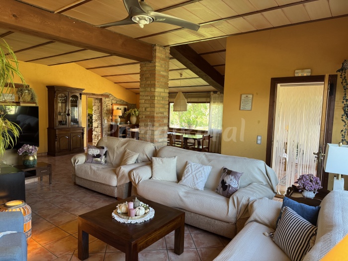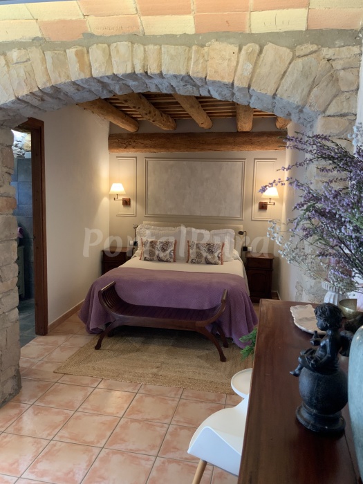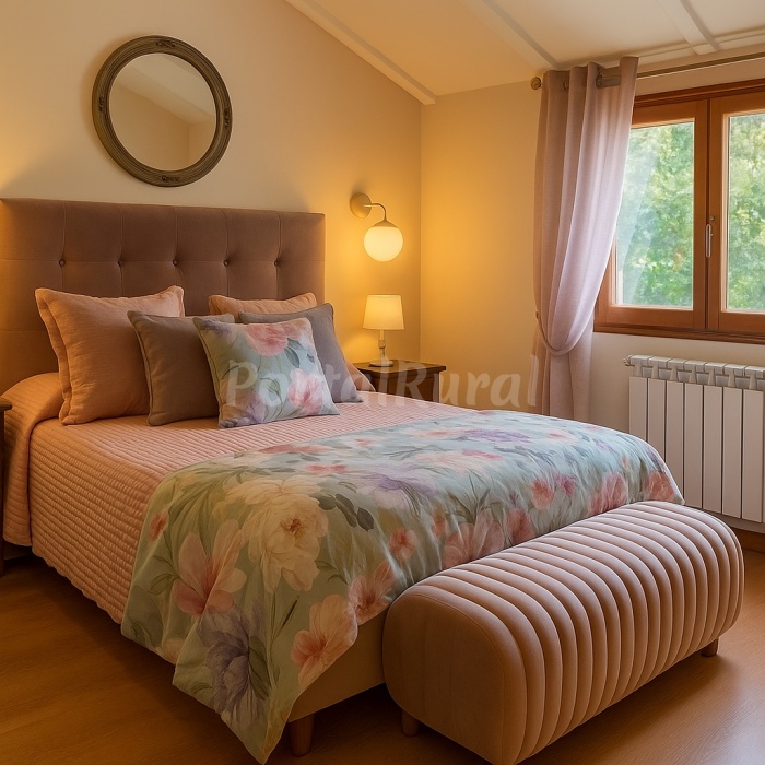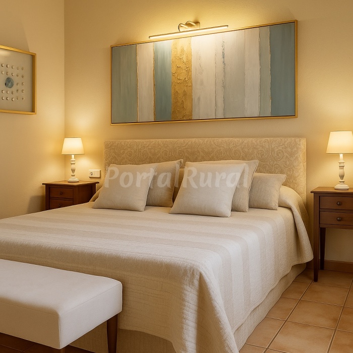 Casa Vermella fue, durante generaciones, el lugar donde se secaba el trigo y se guardaban los pajares. Un espacio sencillo, pero lleno de vida, trabajo y recuerdos. Hoy, tras una restauración hecha con cariño, la casa renace conservando su esencia. Cada muro guarda una historia y cada rincón respira calma. La casa cuenta con una barbacoa cubierta, jardín amplio, pista de padel y piscina, además de una encantadora casita de madera para que los niños jueguen, parque infantil y zona de aparcamiento. La magnifica situación permite disfrutar de un paisaje único e inolvidable donde la tranquilidad y el relax están garantizados gracias al continuo contacto que se mantiene con la naturaleza. En el interior encontrarás cuatro dormitorios y una suite, todos con baños independientes, así como una cocina totalmente equipada, lavadora, y un acogedor salón-comedor con chimenea, televisión y calefacción. Para más detalles, puedes consultar la distribución de las camas.