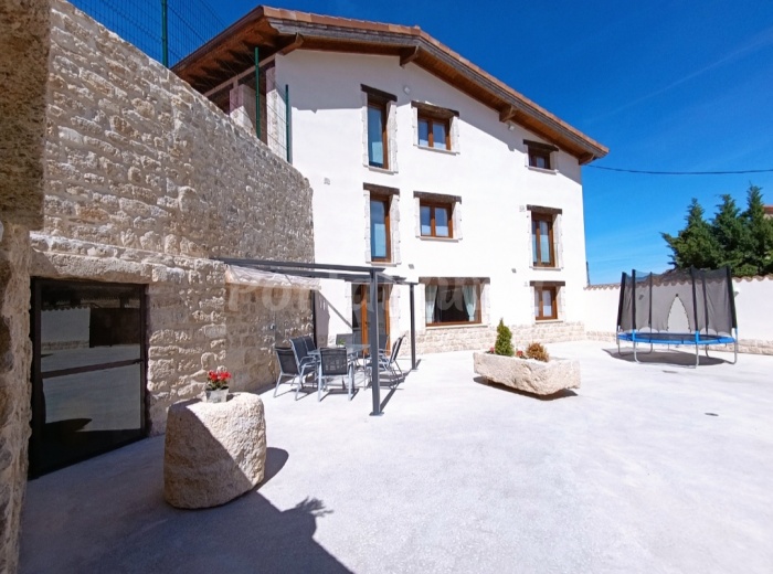 Casa Rural Lagar Del Altillo , Lagar del Altillo está ubicada en Revilla Vallejera, provincia de Burgos. Es la fusión perfecta entre tradición y modernidad entre naturaleza y comodidad. La casa se divide en tres plantas: La planta baja, lo constituye su salón-cocina totalmente equipada, una amplia mesa de comedor de 4m y zona de sofá. Además para una mayor comodidad, esta planta cuenta con un aseo común y una habitación con cama de matrimonio, baño individual, tv, y termosta en la propia habitación. La primera planta cuenta con tres habitaciones con cama de matrimonio, baño individual, tv y termostato en habitación. La segunda planta despliega todo su encanto;una habitación cuádruple con baño individual, tv y termostato en habitación y tipo loft ideal para familias con cama de matrimonio y dos camas individuales, baño individual, zona de estar con sofá, tv, lavandería y termostato independiente. Pero Lagar del Altillo, no termina en su interior. Afuera un jardín de unos 150 metros cuadrados invita al relax, con piscina portátil y conjuntos de jardín. Y para los amantes de la comida al aire libre, disponemos de barbacoa cubierta además de una zona de juegos y parking gratuito para seis coches. Un rasgo distintivo de nuestra casa es su bodega, aquí entre mesas y antiguas cubas de vino, podrás saborear la tradición vitivinícola de la zona, convirtiendo cualquier encuentro en una experiencia inolvidable.